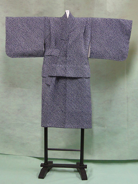 子供用着物 兵児帯で男児着物に 兵児帯を男の子の着物と袖無しの羽織に仕立てました。 まずはこの帯を湯のし機を使って伸ばします。縦の巾も横の巾も出来るだけ伸ばします。 この生地を有効に使いました。着物の紐、羽織の紐、まで作りました。そして、身揚げ、肩揚げもしてあるのですぐに着用出来ます。 可愛く仕立て上げりました。写真をご覧下さい。 出来上がった着物と袖無しの羽織はこの様になりました。 |←前の事例|次の事例→|