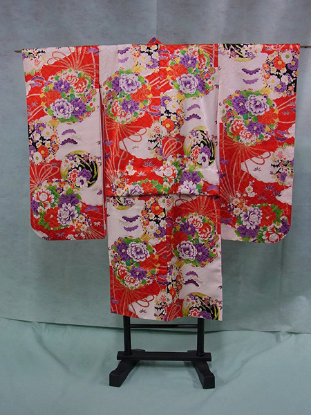子供用着物 7才用の七五三用着物に肩揚げ、腰揚げをしました。 七五三が近づきますとお子様の身長、裄に合わせて、肩揚げ、腰揚げのご注文が多くなります。 ご依頼が多くなりますとお断りすることもやむを得ないので、早めにご連絡頂ければと思います。 そして、着用が終われば、揚げを外してちょっと折り目を取って置かれると、次の着用時にまた、綺麗に出来上がります。時には、お母さんが着用されたままで、お持ちになる事があります。 |←前の事例|次の事例→|
